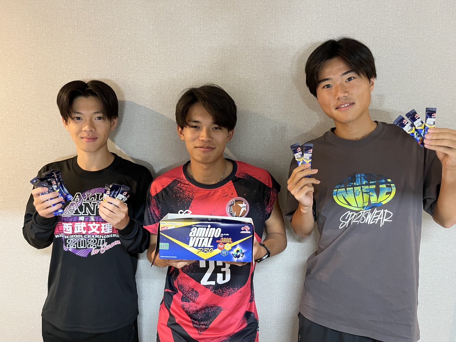 2025年10月8日【頂き物のご紹介】 芝浦工業大学OBの梶原遥様からアミノバイタルの差し入れ頂きました!✨ ありがとうございます😊📸 左から:大沼①、長谷川④、永田③ 2025年10月3日② 2025年10月14日