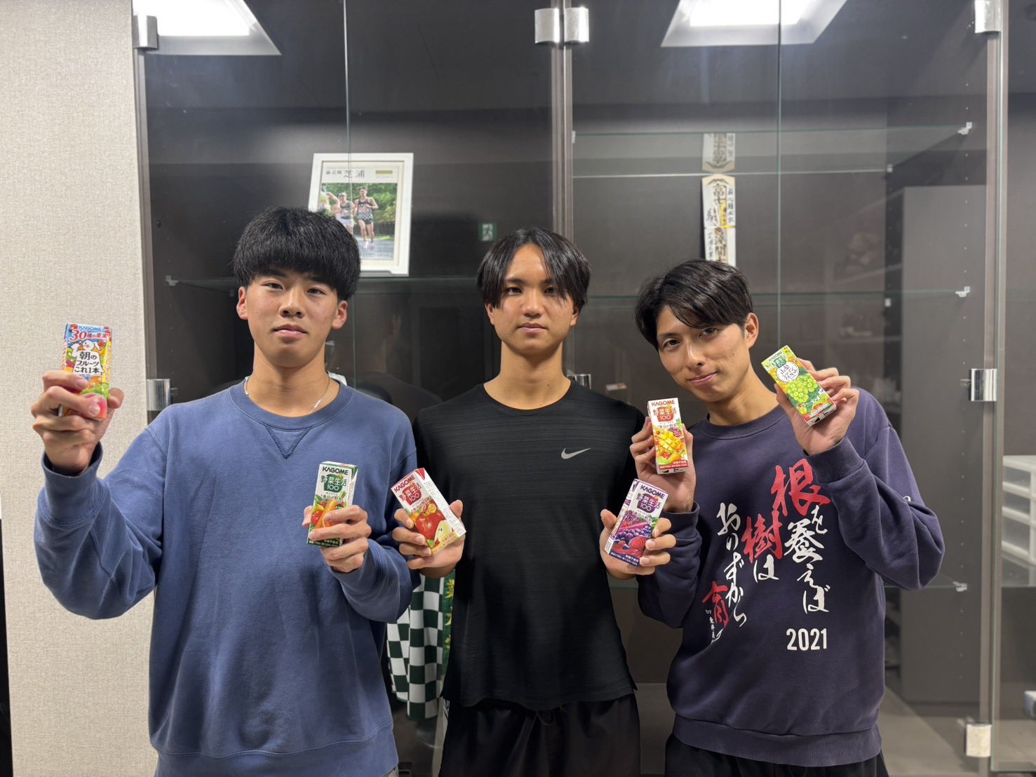 2025年10月25日【頂き物のご紹介】 塩崎浩貴のご家族様より、野菜ジュースの差し入れを頂きました!🥕✨ 練習後にぴったりの栄養チャージになりました。 ありがとうございます😊📸 左から:後藤①、新城③、塩崎③ 2025年10月17日 2025年10月25日②